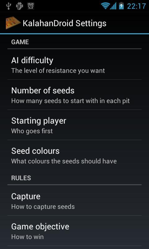 与另一个玩家或与KalahanDroid一起玩Kalaha。